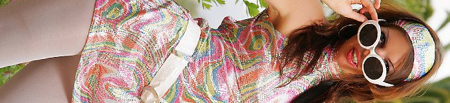 A Shiny white pantyhose is Venus Black wearing under her very short metallic dress sixties dress. See Venusblack at the terrace showing her sexy body and legs in pantyhose and get teased by this hot lady in tights.