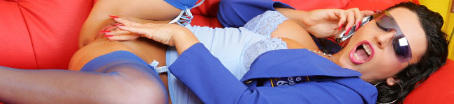 Kinky Sophia is over to play, in a sexy dress and even sexier sheer seamless pantyhose! She knows more than one way to get off and shows a couple here, including a red dildo and masturbating with her pantyhose!