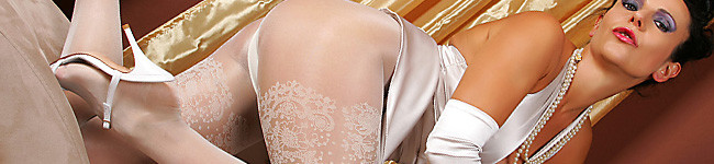 A silky satin dress and a pair of exclusive Christian Dior tights is Eve wearing today! See her stripping out slowly of her sexy dress and showing you her well shaped legs and body completly! Eve will be strocking herself with her gloved hands and for sure enjoying herself a lot!