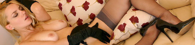 Britsh Glamour Lady Raffaela with long blonde hair and big Boobs looks sexy in fully fashioned Stockings and classic black pumps.