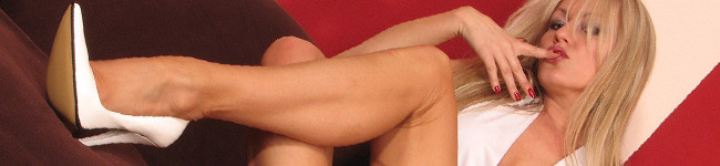 Blondes do like pink and so do I! I’m sure you will love my long legs in those sexy seamed stockings and you will go crazy for my killer high „fuck me heels“! Get some very teasing views on my legs and see me wearing that sheer top with the ultra short pink skirt.