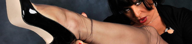 Horny MILF Amanda Moreno in sexy minidress, seamed Stockings and black Fuck me Heels.