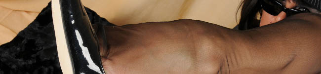 Queen of Squirt Amanda Moreno in Business outfit, dot Stockings and Killer Heels.