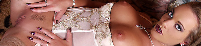 Joanne is posing for you on the tiger skin wearing a romantic corselet and some tan stockings. See her getting in the right mood and fingerin her pussy and her tits. The blonde Joanne is for sure a young lady every men would wish to play with!