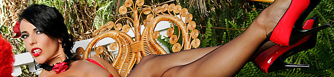 Spanish Lady Eve is wearing a sexy spain dress and some classic black seamed stockings. Join Eve at the garden where she found that lovely quite place being surrounded by tropical plants. Eve starts caressing her long legs, but also her big breasts and her so sexy pussy.