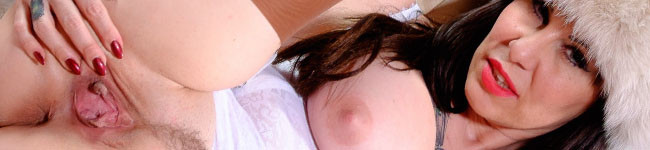 Sexy inked MILF Saffy Mc Kenna in sexy Vintage Lingerie, Stockings and Heels wanks her wet pussy.