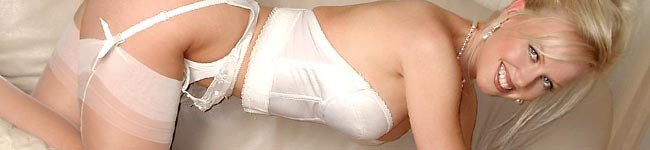 Curvy blonde Bride Tina Grant in sexy white Lingerie